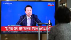 7일 서울 용산구 서울역 대합실에서 시민들이 윤석열 대통령의 대국민 담화 및 기자회견을 TV 중계로 시청하고 있다. 김규빈 기- 2024.11.07 14:14