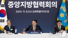 (서울=뉴스1) 송원영 기자 = 윤석열 대통령이 6일 강원도 춘천 강원도청에서 열린 '중앙지방협력회의'에서 발언하고 있다. (- 2024.11.06 18:52