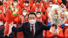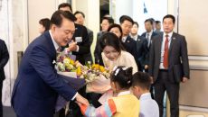 꽃다발 받는 윤석열 대통령 부부