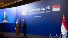 (서울=뉴스1) 송원영 기자 = 윤석열 대통령이 8일 오후(현지시간) 싱가포르의 한 호텔에서 열린 한·싱가포르 비즈니스 포럼에- 2024.10.10 09:08