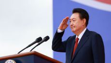 (서울=뉴스1) 송원영 기자 = 윤석열 대통령이 1일 오전 경기도 성남 서울공항에서 열린 건군 76주년 국군의날 기념식에서 지- 2024.10.01 16:02