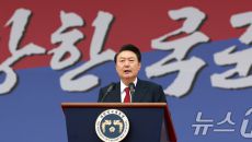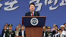 (서울=뉴스1) 송원영 기자 = 윤석열 대통령이 1일 성남 서울공항에서 열린 건군 76주년 국군의날 기념식에서 기념사를 하고- 2024.10.01 16:02