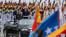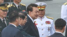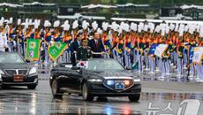 (성남=뉴스1) 김도우 기자 = 윤석열 대통령이 1일 경기도 성남 서울공항에서 열린 건군 제76주년 국군의 날 기념식에서 사열- 2024.10.01 13:14