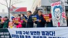 핵심요약 20일 강릉 권성동 의원 사무실 앞에서 기자회견 윤석열 대통령이 내란수괴 혐의로 구속된 가운데 강원 강릉에서도 윤 대- 2025.01.20 15:18