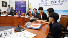 후쿠시마 핵 오염수 해양투기 방류 저지 위해 민주당 찾은 어린이 활동가들