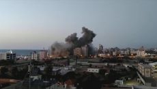 이스라엘 폭격으로 가자지구 주거용 13층 건물 붕괴