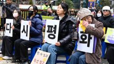'다시 평화' 4년여 만에 평화의소녀상 앞 열린 수요시위 [TF사진관]