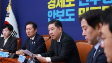 [서울=뉴시스] 이재우 신재현 기자 = 더불어민주당은 10일 검찰 수사팀에서 대장동 개발 비리 사건 항소 포기 결정에 대한 반- 2025.11.10 10:16