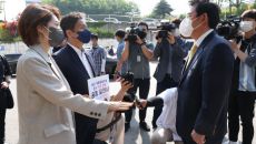 고민정-김영배 본부장, 대통령집무실 이전 관련 항의 서한 전달