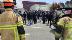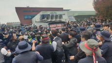 사상자가 발생한 현장은 현재 경찰과 노조가 몸싸움을 벌이며 대치하고 있다. 오후 1시 33분경에는 노조 차량이 방패를 들고있던- 2026.04.20 14:27