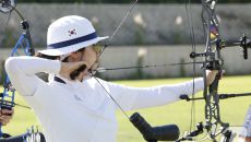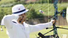집중해서 활시위 당기는 최용희