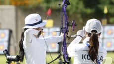 (광주=뉴스1) 김태성 기자 = 광주 2025 현대 세계 양궁선수권대회가 5일 개막한 가운데 광주국제양궁장에서 한국여자 컴파운- 2025.09.05 15:54