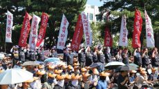합병 반대, 정년 연장 과도한 요구 파업권 조정, 법 허점 조기 보완을 국내 사업장 곳곳에서 파업 출정식이 울려 퍼지고 있다.- 2025.09.03 18:54
