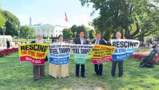 우리나라 철강 대표 도시인 경북 포항시의 이강덕 시장이 미국 백악관과 국회의사당 주변에서 철강 관세 인하를 촉구하는 시위를 벌- 2025.09.03 16:27