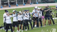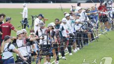 (광주=뉴스1) 김태성 기자 = 3일 광주시 월드컵경기장에서 '광주 2025 현대 세계 양궁선수권대회' 출전 선수들이 대회를- 2025.09.03 16:31