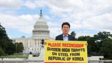 "철강 관세 대폭 인하하라"… 포항시장, 미국 워싱턴서 이틀째 시위 나서
