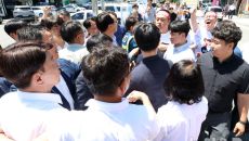 [전주=뉴시스]최정규 기자 = '전북 전주-완주 행정통합'으로 인한 갈등이 첨예한 가운데 통합 반대 측의 시위가 '폭력'시위로- 2025.07.25 17:06