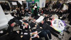 전장연 출근길 지하철 시위 '잠시 중단'
