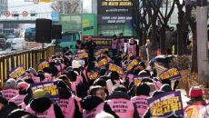 총파업 결의대회 진행하는 철도 비정규직 노동자들