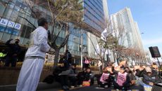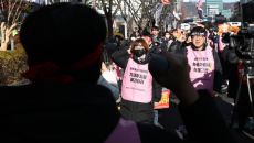 [서울=뉴스핌] 최지환 기자 = 22일 오후 서울 용산구 코레일네트웍스 사무실 앞에서 철도노조 소속 조합원들이 코레일네트웍스지- 2025.12.22 17:13