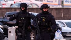 (AFP=뉴스1) = 14일(현지시간) 호주 시드니 본다이 비치에서 총격 사건이 발생한 가운데, 무장 경찰들이 출동해 경계근무- 2025.12.14 19:39