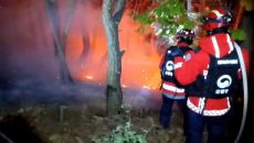 [영월=뉴시스]홍춘봉 기자 = 야간 소방 헬기 투입이 불가능한 악조건 속에서도 신속한 공조로 산불을 조기에 진화한 산림 당국과- 2026.04.22 10:52