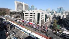 경찰 차벽으로 둘러싸인 서울중앙지법 입구