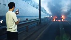 연기나는 車 쫓아간 경찰의 ‘외침’…부부 내리자마자 폭발