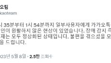 카카오톡 접속 장애 발생...“정상화 완료, 원인 파악 중”