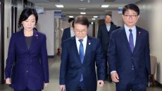 ▲ 이정식 고용노동부 장관(가운데), 박상우 국토교통부 장관(왼쪽), 오영주 중소벤처기업부 장관 중대재해처벌법 확대 적용을 사- 2024.01.24 12:02