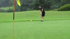 "들어가라, 들어가라" 폭우 속 신중한 퍼팅