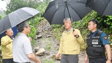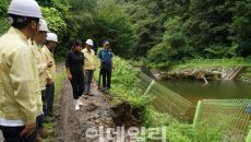 (정선=연합뉴스) 배연호 기자 = 강원 정선군이 18일 정선읍 봉양6리 관음동 마을의 산사태 위험 징후에 대한 현장 확인에 나- 2023.07.18 13:36