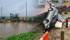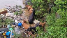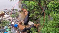 '폭우 속 소떼 구출작전'…송아지는 크레인으로 끌어올려(종합)