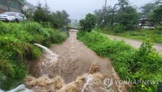 (강원 고성=연합뉴스) 박영서 기자 = 강원 고성군에 태풍 카눈의 영향으로 10일 시간당 80㎜가 넘는 장대비가 쏟아지면서 주- 2023.08.10 15:30