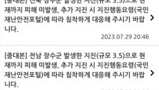장소는 ‘전남’ 장수로, 시간은 1시간 지나서… 중대본 지진 재난문자 난맥상