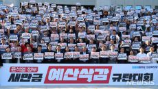더불어민주당이 7일 윤석열 정부의 내년도 새만금 사회간접자본(SOC)예산 삭감 규탄대회를 개최했다. 이날 전북에 지역구를 둔- 2023.09.07 20:30