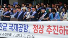 전북지역 상공인과 여성단체 회원들이 새만금국제공항을 기존 계획대로 추진할 것을 촉구했다. 새만금국제공항 조기건설 추진연합은 2- 2023.08.29 13:35