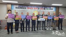 (전주=연합뉴스) 김동철 기자 = 전북도의원들이 추석 연휴에 내년도 새만금 사회간접자본(SOC) 예산의 원상 복구를 촉구하는- 2023.09.28 05:00