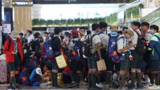 2023 새만금 세계스카우트 잼버리 대회에 참가했던 대원들이 16일 서울 송파구 잠실야구장에서 열린 프로야구 경기를 관전하고- 2023.08.17 03:00