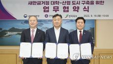 전북대학교는 19일 전라북도, 새만금개발청과 함께 새만금거점 대학-산업도시 구축을 위한 3자 협약을 체결했다. 이날 협약으로- 2023.09.19 16:11