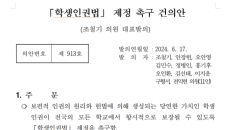 조례 이상의 법 제정 필요성 강조 최초로 학생인권 조례 폐지안을 통과시켰던 충남도의회에서 국회에 ‘학생인권법’ 제정을 촉구하는- 2024.06.18 16:10