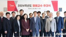 [서울=뉴시스]김수아 인턴 기자 = 서울시립대학교가 지난 27일 2024년 상반기 퇴직 교수를 위한 정년 퇴임식을 개최했다.- 2024.02.28 11:32