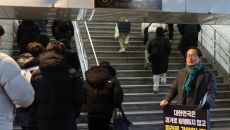 (서울=뉴스1) = 조희연 서울시교육감이 20일 오전 서울 강남구 도곡역 앞에서 학생인권조례 폐지에 반대하는 1인 시위를 하고- 2023.12.20 09:46