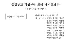 법원 제동 '충남학생인권조례 폐지안', 국민의힘 도의원 직접 발의