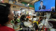 [이데일리 방인권 기자] 이재명 대통령의 취임 100일 기자회견이 열린 11일 서울 서대문구 인왕시장에서 상인들이 TV를 통해- 2025.09.11 11:21