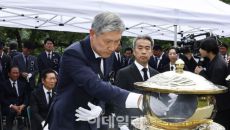 참배하는 김옥숙 여사와 노재헌 (광주=연합뉴스) 5·18민주화운동 45주년 하루 뒤인 19일 노태우 전 대통령의 배우자인 김옥- 2025.09.11 09:18