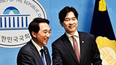 정청래-장동혁, 13일만의 첫 악수…張 "마늘·쑥 먹으며 기다려"