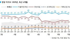 한때 출렁였던 이재명 대통령의 지지율이 취임 초반 수준으로 회복했다. 역대 대통령의 취임 100일 지지율과 비교하면 김영삼·문- 2025.09.05 10:48