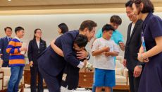 이재명 대통령, 아이들과 '포옹'