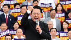 비 맞으며 당원 결속 다진 국힘 "무도한 李 정권 무너뜨리자"